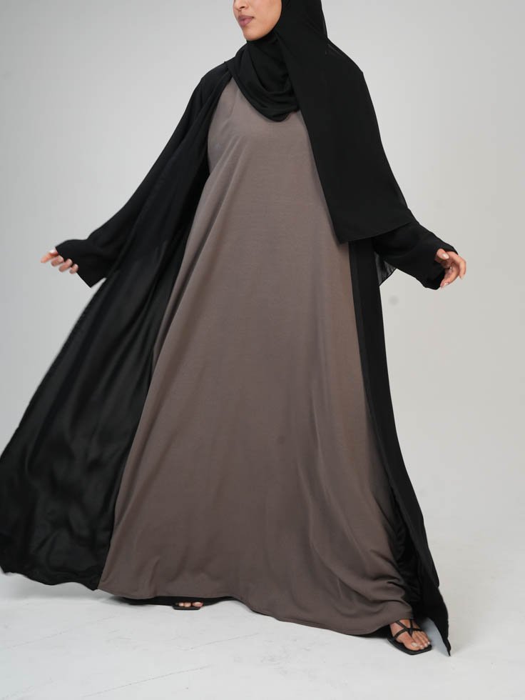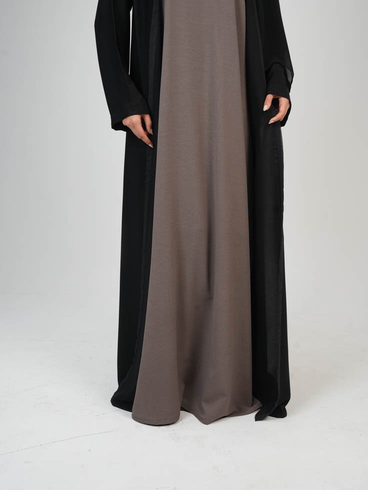 Designed for the modern woman who embraces both edge and elegance, Bold Contrasts is a colourblock abaya that speaks in silhouettes and shades. With structured lines that celebrate form and fabrics that flow with ease, it’s a contemporary take on modest dressing. Available in a versatile palette—from rich maroon to soft beige—each variation reflects quiet confidence and effortless poise.